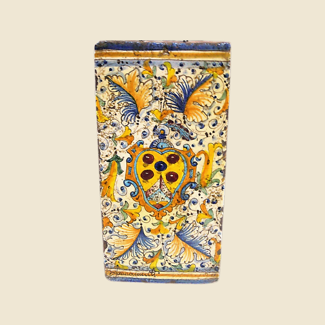 Rctangular tile cm 30 x 15 Medici family cote of Arms and cafaggiolo leaves