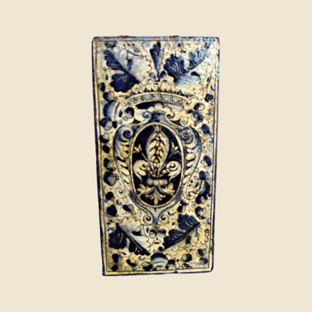 Recensisci per primo “Rectangular tile cm 30 x 15 Fleur de lys cote of arms and blue leaves”