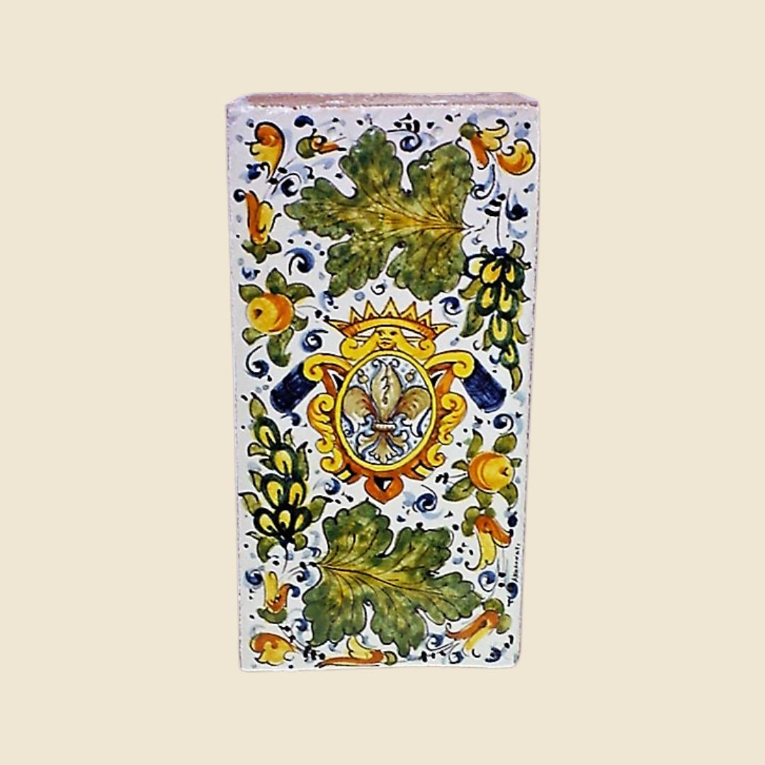 Rectangular tile cm 30 x 15 Giglio cote of arms and Cafaggiolo green leaves