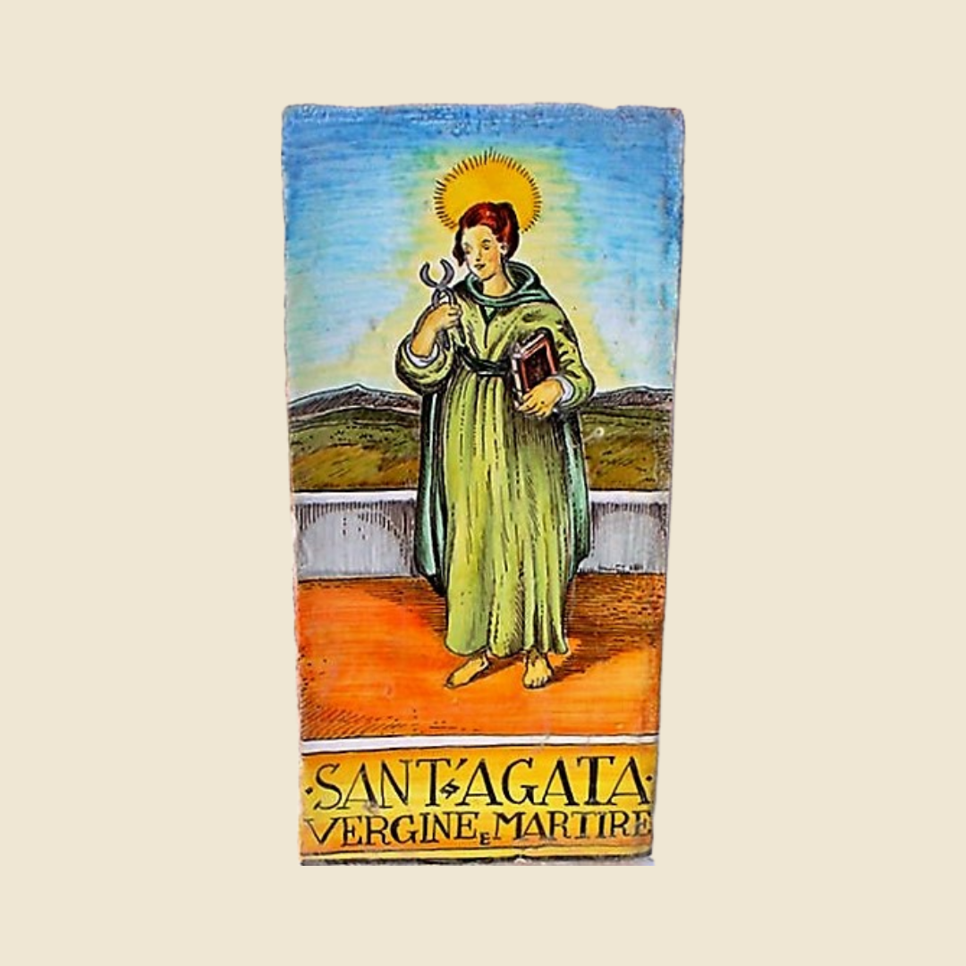 Rectangular tile, commonly called “pianella” – the brick usually used to pave rural structures typical of the Tuscan countryside. Tuscan terracotta, especially from the Impruneta area, is highly appreciated and known for its waterproof characteristics and resistance to low temperatures, in addition to the beautiful terracotta shades; making it unique, recognizable and highly sought after. We use this kind of tile, with its irregularities, veins, at first glance imperfections of hand-made terracotta; to create artefacts with classic decorations, which come from distant times and places; but it is precisely thanks to these irregularities that our products take on a worn, lived-in appearance that smells of antiquity; these imperfections are like scars that make each individual product unique and unrepeatable. Saints Series: Saint is an attribute of a being, object or manifestation that is believed to be related to divinity.