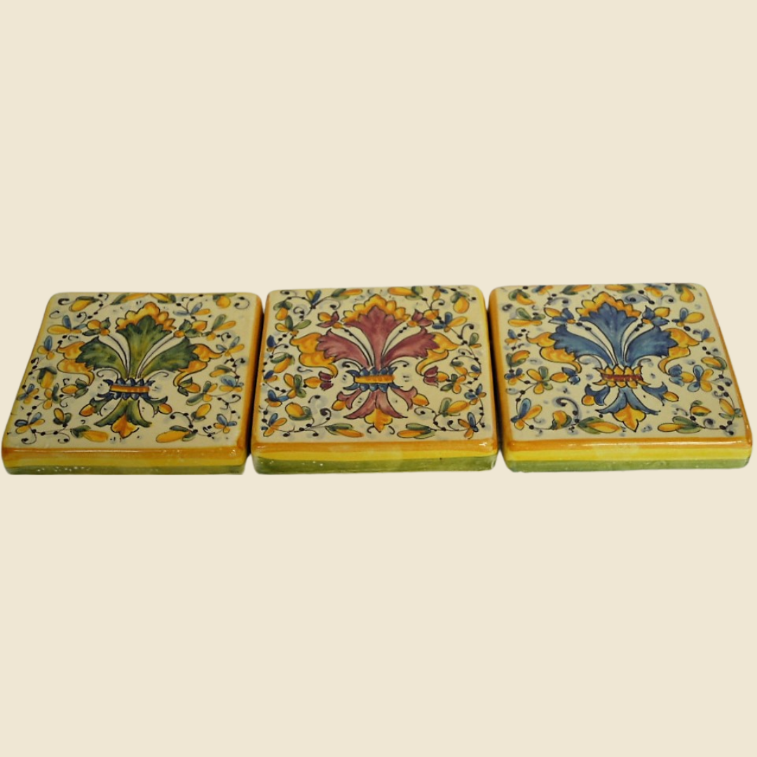 Handmade tile decorated with the subject of the Florentine family coat of arms.