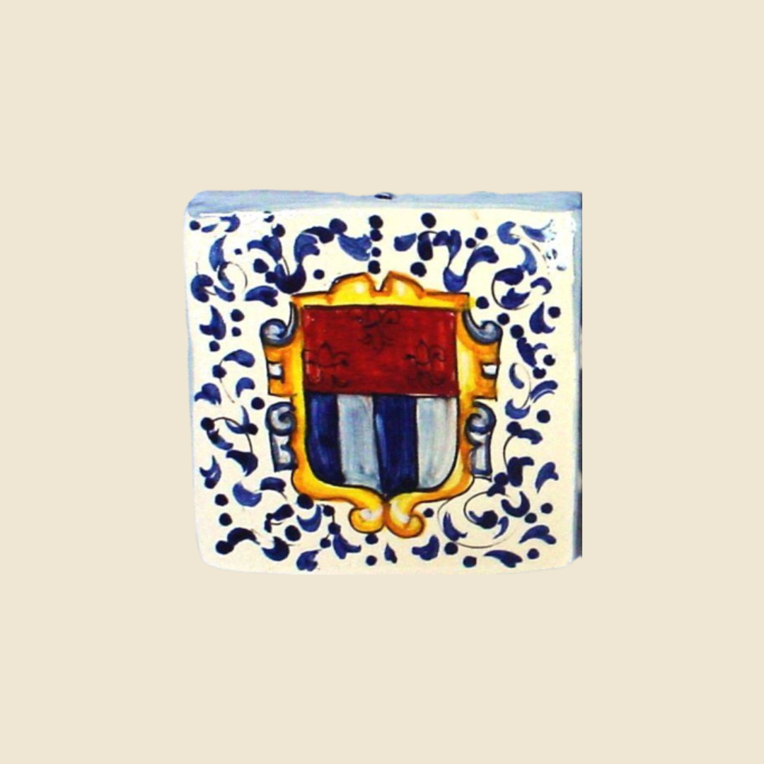 Handmade tile decorated with florentine family'scote of  arms.