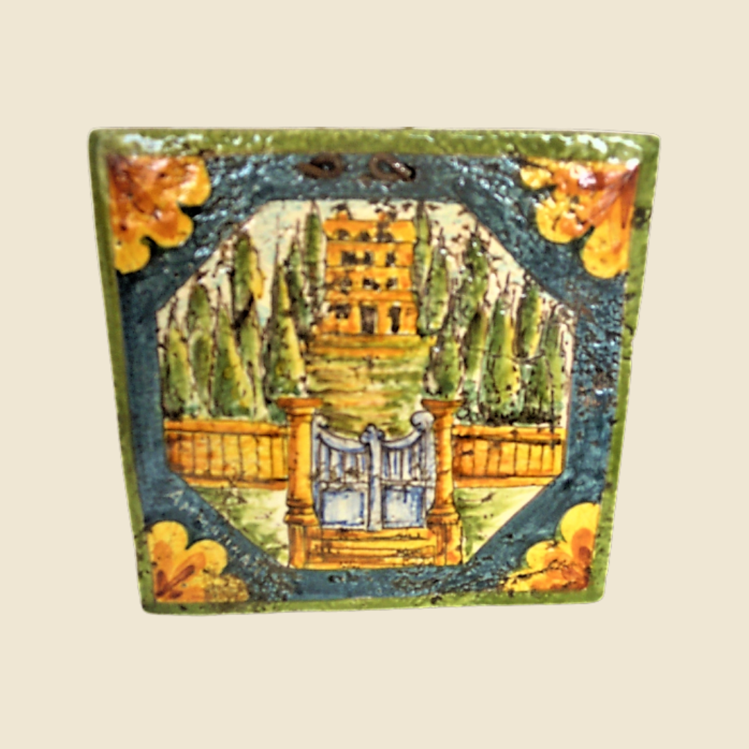 Each element has been carefully hand-painted, evoking the elegance and majesty of ancient medieval castles. The towers soar towards the sky, while the drawbridges and fortified walls tell stories of knights and ladies. This tile is not just a decorative object, but a fragment of history that brings with it the charm of bygone eras, transforming any space into a corner of dream and wonder. Perfect for those who want a touch of history and art in their environment.