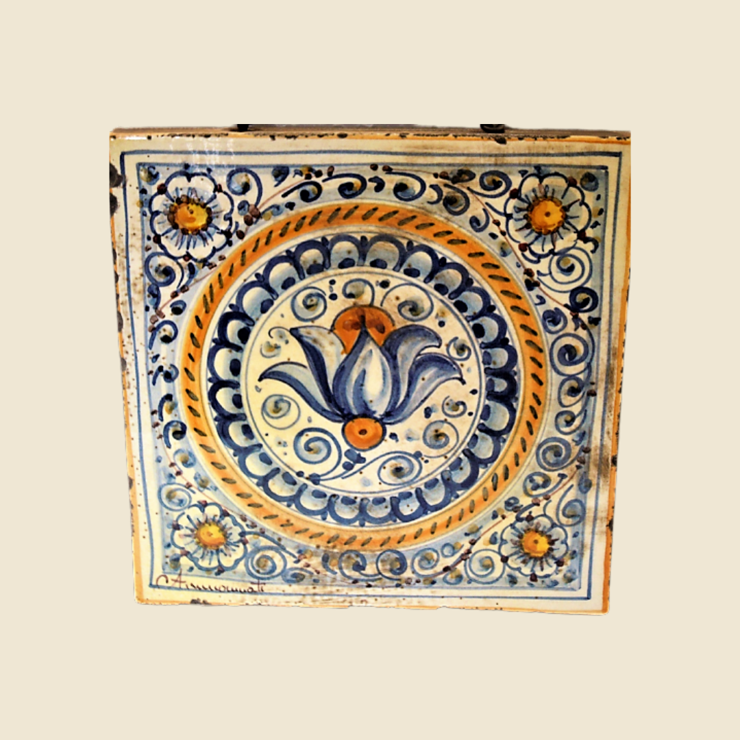 Hand-painted artistic tile with colorful geometric patterns, captures the attention of anyone who observes it. Every line and curve seems to tell a story, combining tradition and creativity. The bright colors intertwine in perfect harmony, evoking a sense of warmth and welcome. This tile is not just a decorative element, but a work of art that transforms any space into a place of beauty and inspiration. Perfect for embellishing a kitchen, a bathroom or even a small corner of the living room, it adds a touch of personality and unparalleled style.